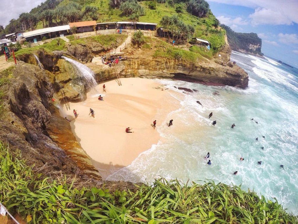 Sebelum wisatawan turun melewati anak tangga, wisatawan akan bersanding dengan air terjun. Nah, tempat ini pun ada yang bisa digunakan untuk berendam. setelah sampai di bawah, wisatawan dapat merasakan air terjun saat ini menjadi satu. Pasir-pasir pantai yang kecoklatan menjadi salah satu esoktisme lain yang bisa diterima di sini. saat berada di pasir ini, tinggal di tempat sekitar. Dimana, karang yang luar biasa akan menuju kawasan ini. Di tambah dengan air terjun yang tepat berada di tengah-tengah.