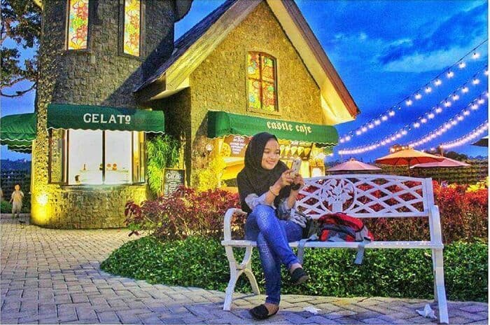 Selain bangunan tersebut, terdapat taman bunga penuh warna yang cantik. Di taman ini, Anda dapat menghabiskan waktu bersama pasangan. Ajak pasangan mengelilingi taman sembari bergandengan tangan. Sangat romantis!